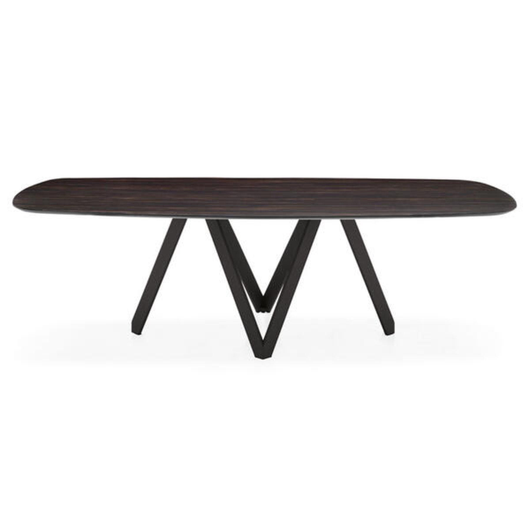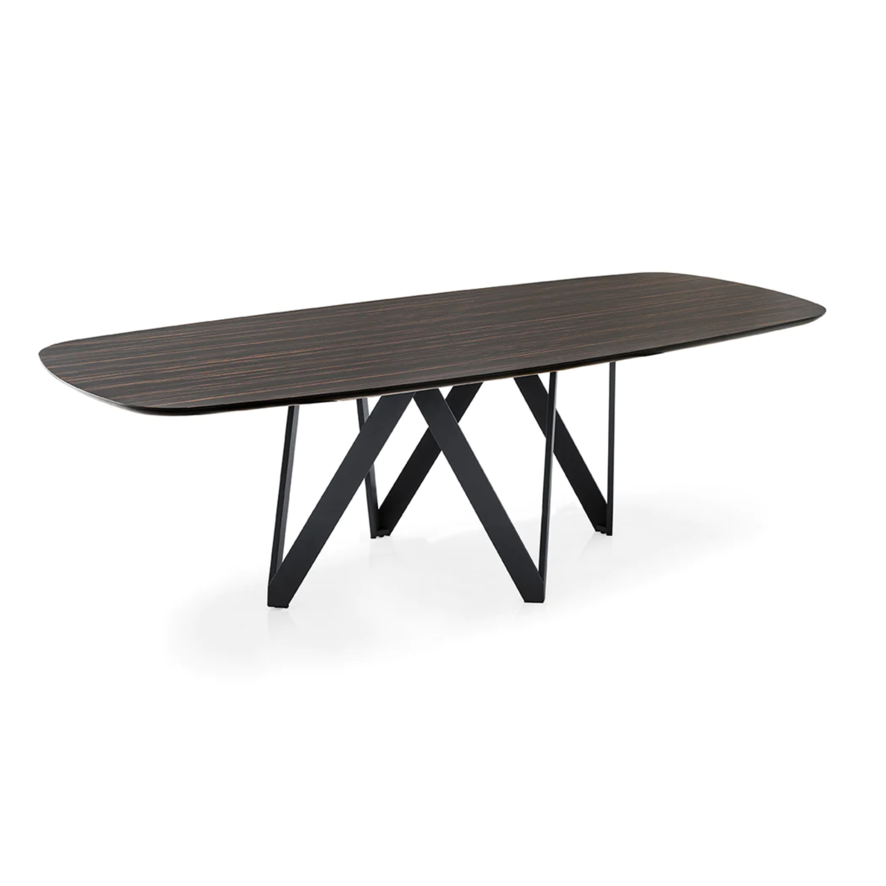 CARTESIO es una mesa de líneas elegantes e icónicas caracterizada por una original estructura portante de metal pintado y compuesta por 4 elementos en "V" de sección rectangular e independientes. Escultórea y moderna, aportará personalidad a los ambientes más clásicos y rigurosos con sus sólidos trazos.