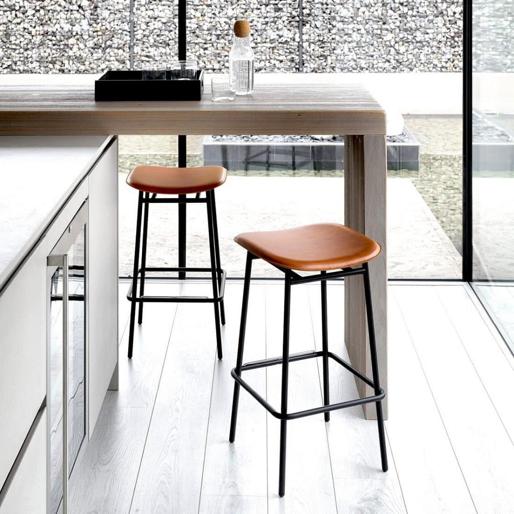 Este banco, con un diseño inspirado en los años 50, forma parte de la familia de asientos FIFTIES, todos ellos caracterizados por su ágil silueta de cuatro patas que combina el metal con el cuero o con el revestimiento de piel sintética de tacto suave y sedoso, todos en una gama de colores de tonos cálidos. Los taburetes FIFTIES son adaptables a todos los lugares como en la cocina.