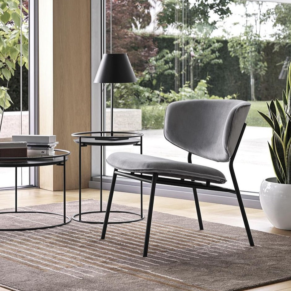 El sillón lounge, parte de la familia de modelos FIFTIES, es un modelo icónico de los años 50 caracterizado por el amplio asiento y el contraste entre la estructura de metal y el importante acolchado. El respaldo y el asiento de hecho tienen un considerable grosor que proporciona un confort extremo.