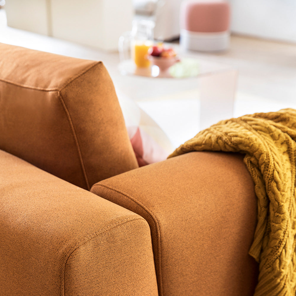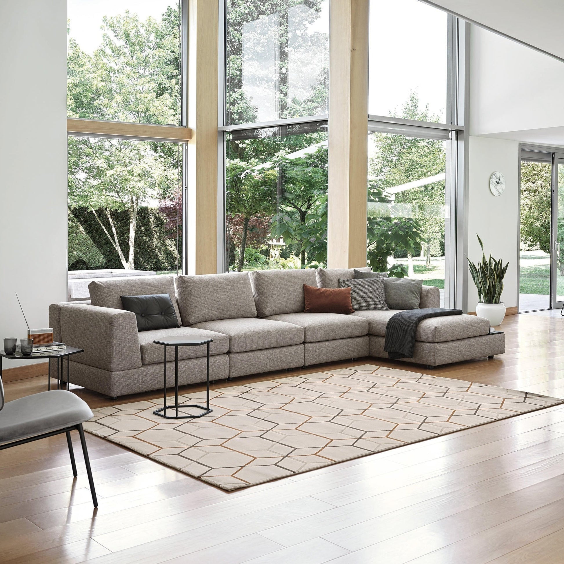 De diseño sencillo y mínimo, Layla responde a las numerosas exigencias estéticas y funcionales de cada uno, también gracias a los distintos tipos de módulos, disponibles en dos anchos (de 80 y 104 cm), que lo convierten en el sofá más versátil de la colección. Asientos de líneas pulcras, acolchados de goma, con estrato superficial de tecnopolímero, para un mayor confort; respaldos mullidos realizados con tres celdas separadas, rellenas de pluma y copos de tecnopolímero.